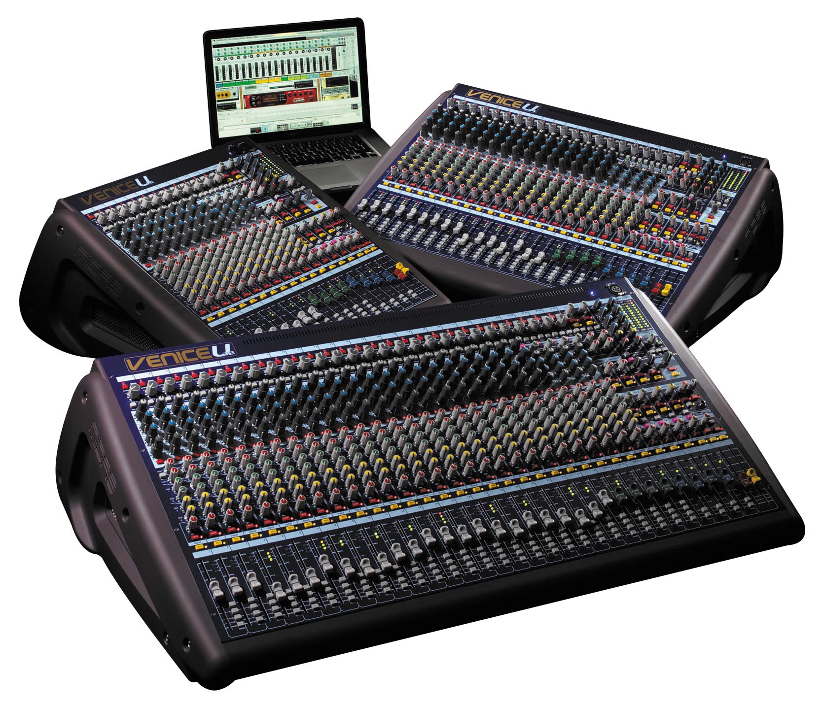 MIDAS’s new mixing console series. The Venice U series, like the VENICE F series that is already on sale, is a recording- and playback-enabled Digi-log mixing console equipped with an USB audio interface that can connect to DAW software (sold separately) installed on a PC. It is an even more compact and affordable model with all the carefully selected features of the VENICE F series.